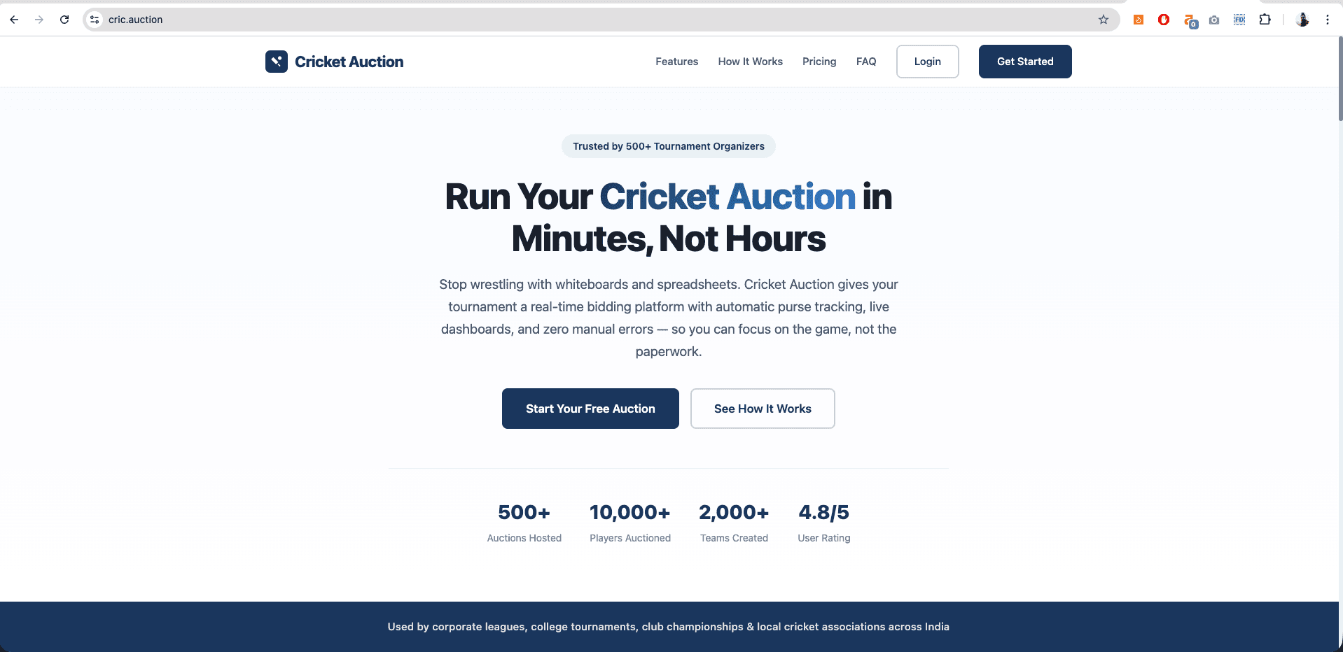 Whether you're organizing a local T20 tournament or a franchise league, CricAuction helps you run a professional, transparent, and exciting player auction experience.
