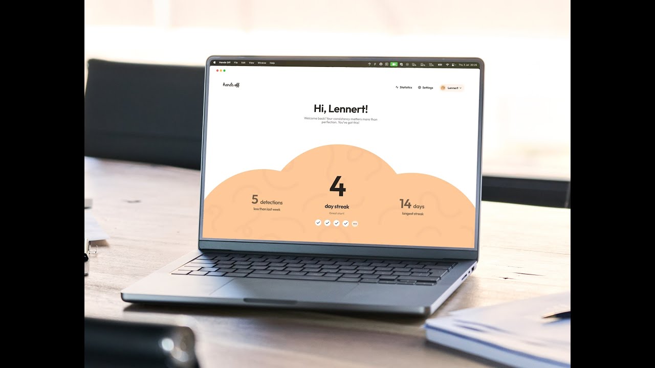 Hands Off helps you stop nail biting by using AI to monitor your webcam and detect when you're biting your nails. The moment nail biting is detected, the app instantly interrupts you with a screen overlay, stopping the habit before it happens.